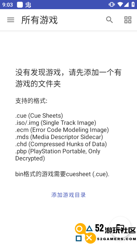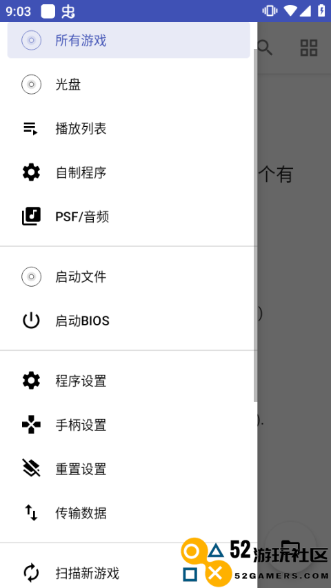 1、在本站下载安装并打开duckstation模拟器,使用手柄连接手机设备之后,点击左上方的三条杠按钮