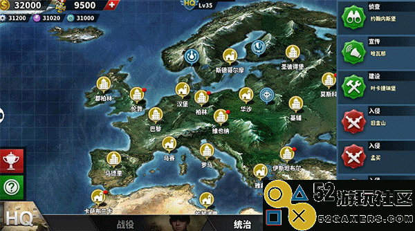 那么有的人会问了,既然每个国家都有自己独特的实力,那么怎么样才可以消灭比自己实力强的国家呢?这时候就要退出政.府界面,进入响当当的HQ(指挥所界面)!