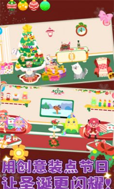 3、按照里面展现出来的主题风格,来把房间打造出圣诞节的创意设计,完成目标任务的挑战探索小镇世界。